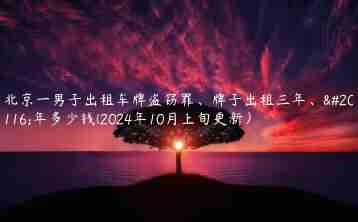 在北京,一名男子因出租车牌盗窃罪被捕,这一事件引发了社会的广泛关注。我的朋友在这一事件发生后,详细了解了北京一男子出租车牌盗窃罪、牌子出租三年、五年多少钱(2024年10月上旬更新)的情况,也让我对这个问题有了更深入的思考。